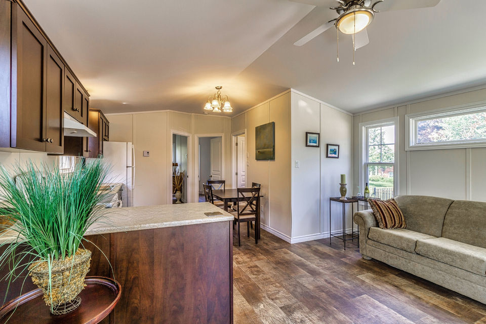 Proof that good things DO come in small packages! The open layout seamlessly connects the living, dining, and kitchen areas. Ample light fills the home with rectangular windows complimented by stylish cabinetry in the kitchen.